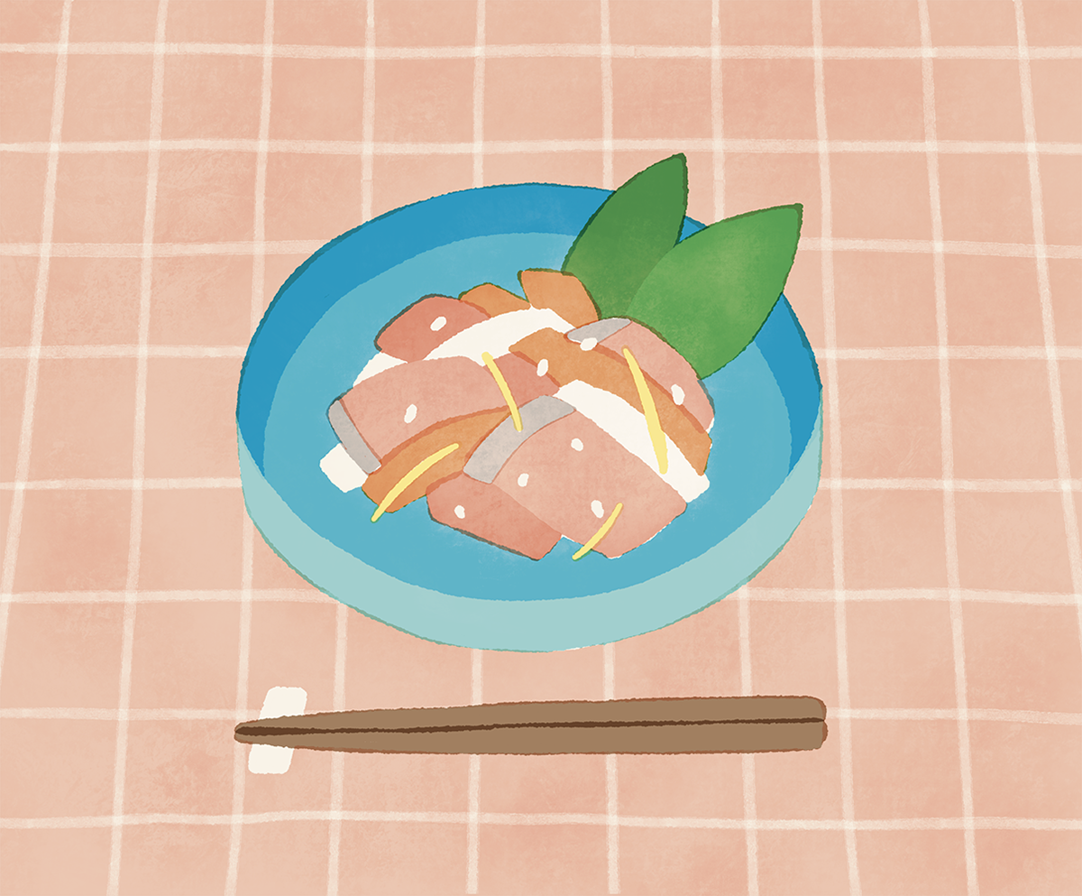 そもそも飯寿司とは、魚と野菜を米麹に漬けて発酵させた郷土料理のこと。北海道全域や東北地方の気温が低い沿岸部の食文化です。飯寿司には鮭やホッケ、ニシン、ハタハタなど北海道の魚が用いられますが、どの魚を使うかは地域や家庭によって異なります。晩秋から初冬ごろに漬け込まれる冬の保存食で、お正月の食卓を彩るハレの日のごちそうとして食べることが多いそうです。